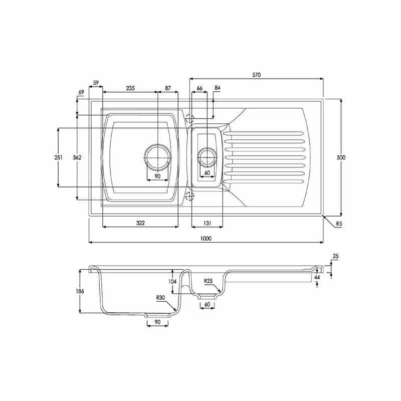 Abode Milford 1.5 Bowl Ceramic Kitchen Sink – White – AW1043