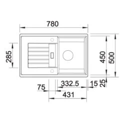 - Main Bowl Dimensions: W 460 x D 380 x H 191mm