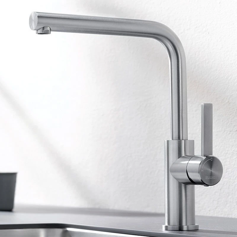 Blanco LANORA High Arched L-Shaped Spout Solid Kitchen Tap (Brushed Stainless Steel) 523122 – Details