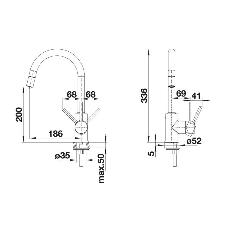 - Stabilisation plate to increase the stability of the tap when fitted in stainless steel sinks