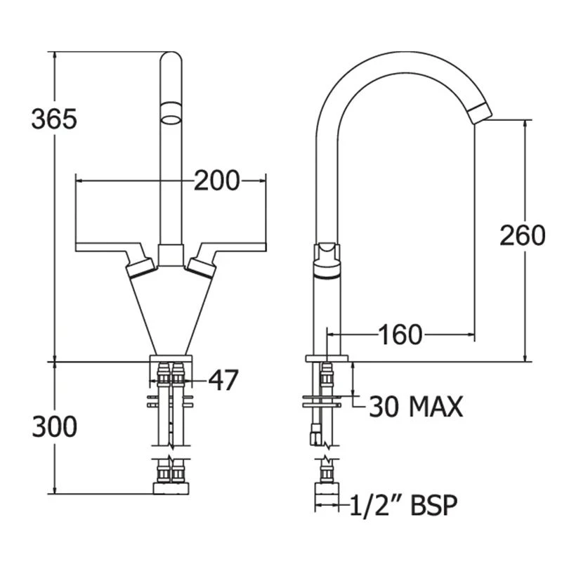 - Tap base to spout: 240mm