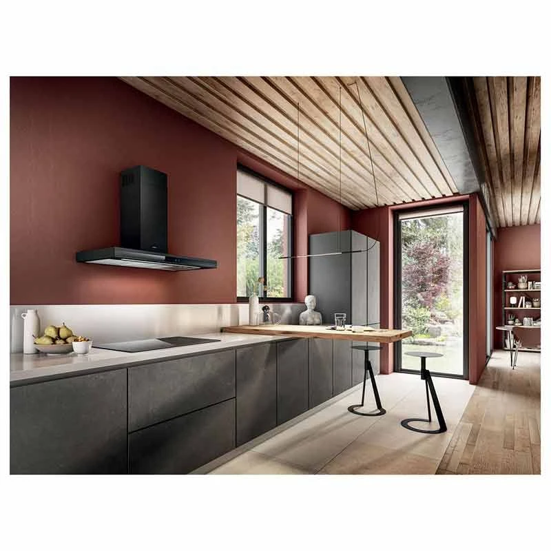 The Elica Adéle 60cm Chimney Hood – Stainless Steel – ADELE-BLK-SS-60 comes equipped with a black glass frontal panel in an aluminium frame to easthetically amplify your kitchen visuals. The pairing of these materials make it an ideal for any kitchen and blend perfectly with other Elica range kitchen appliances. With a 770 cubic meters per hour intensive speed, the hood provides an excellent extraction system that effectively removes all unwanted and residual odors in your kitchen. Built to perform and exceed expectations. There are easy to operate touch controls hidden in the glass for a minimalistic and intuitive user experience. The LED strip light allows your counter top to be illumined with low consumption. This appliance would make a great practical addition to your kitchen collection.