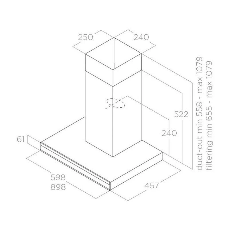 - Height Of Chimney (mm): 558-1079mm Ducting, 655-1079mm Recirculating