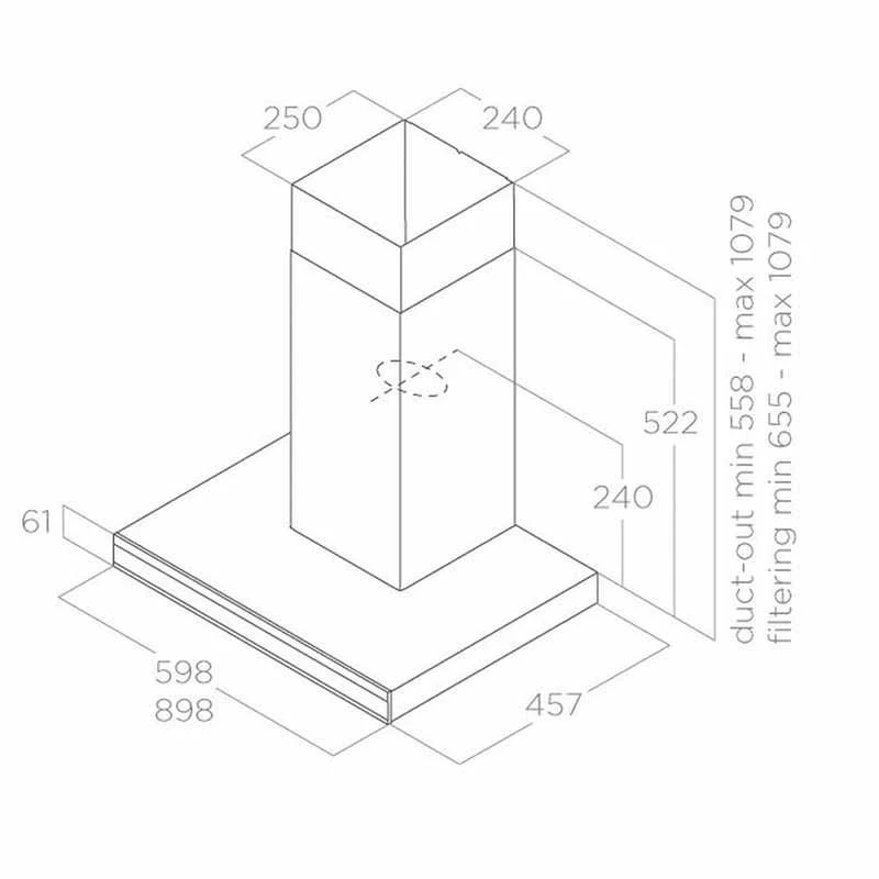 - Height Of Chimney (mm): 558-1079mm Ducting, 655-1079mm Recirculating