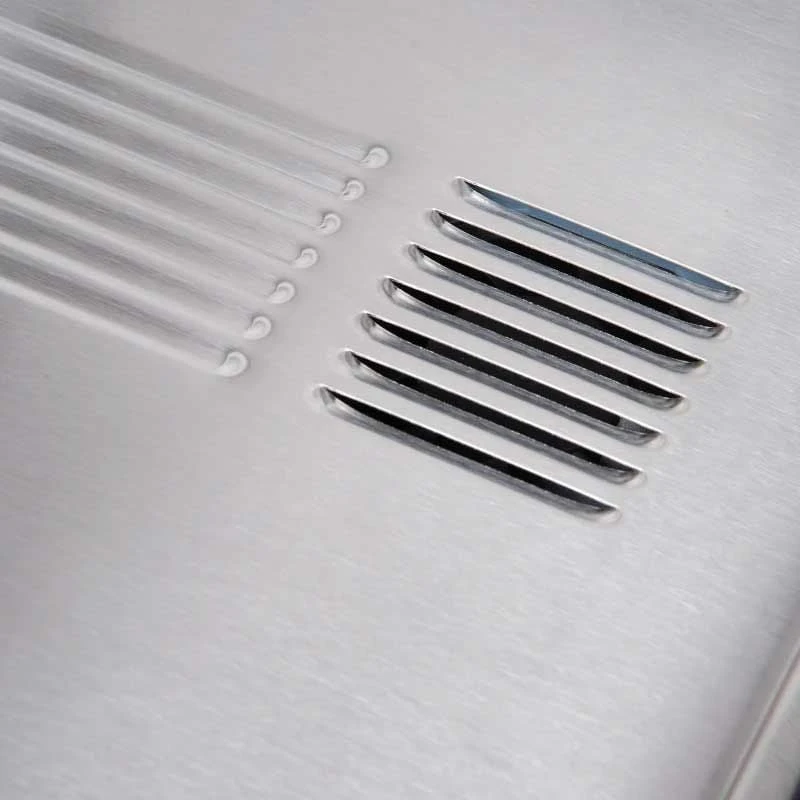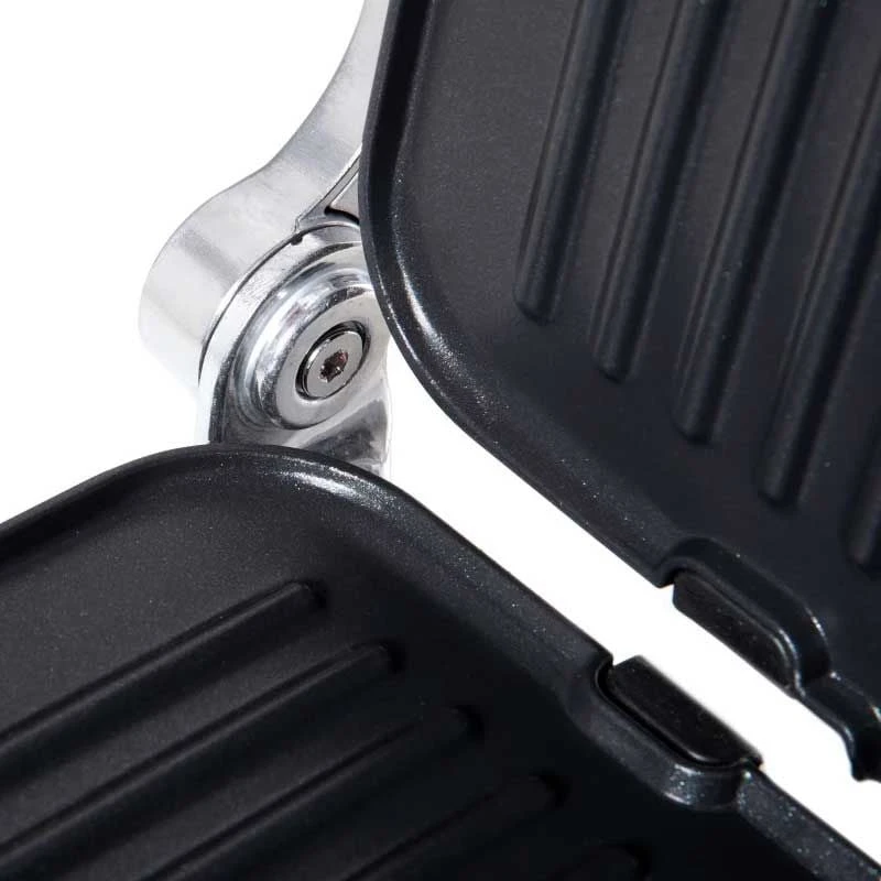- Floating hinge self adjusts to different food thickness for a more even grill.