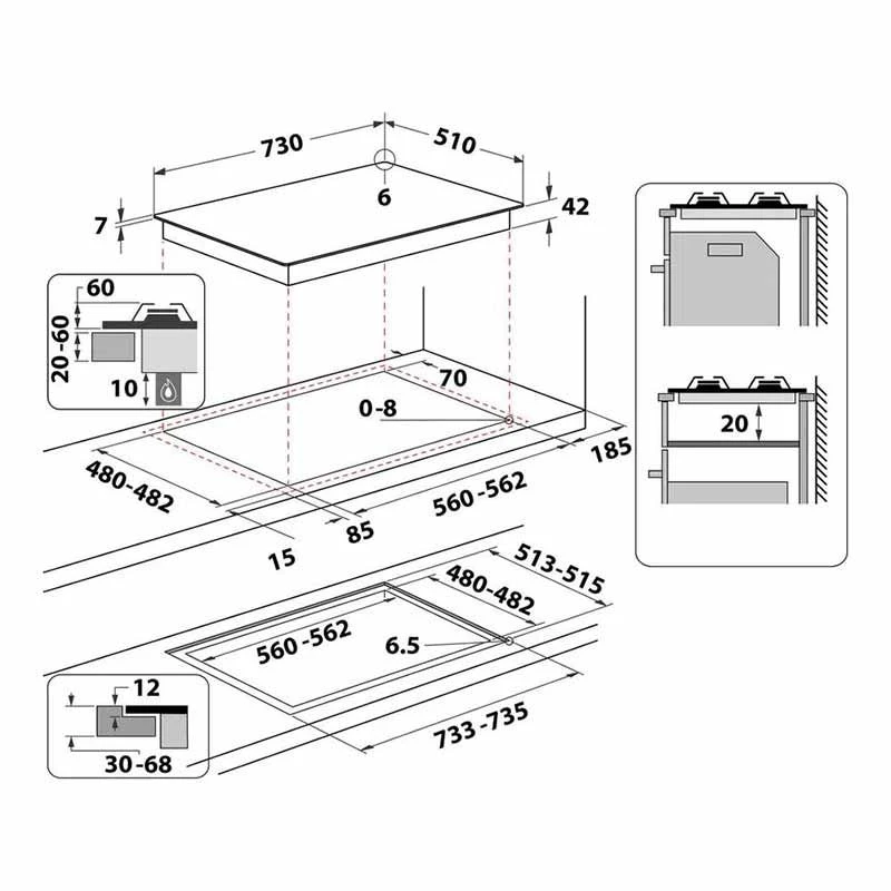 - Gas on glass – elegant glass surface cooktop, which offers a fresh touch to your kitchen style