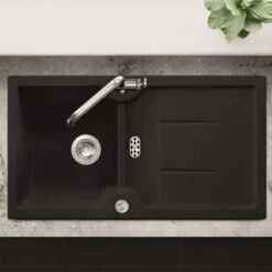 Thomas Denby Melody Pro 1.5 Bowl Reversible Ceramic Kitchen Sink & Drainer – Black Satin – MEL1020BL