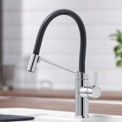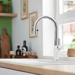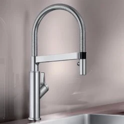 Blanco LINEE-S Pull-Out Handset Silgranit-Look Dual Finish Kitchen Tap – Rock Grey/Chrome – BM2200RG