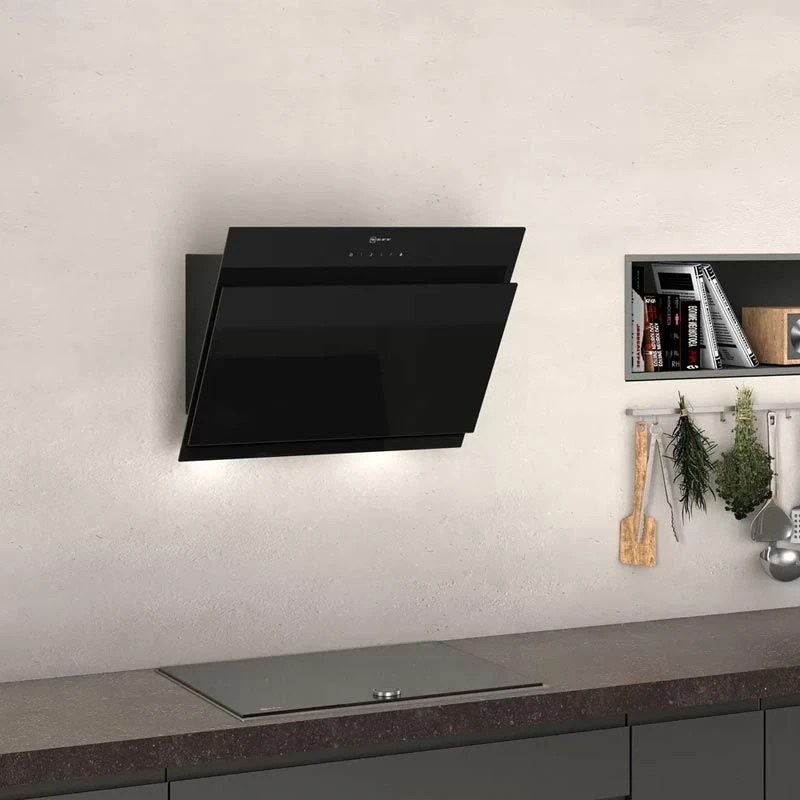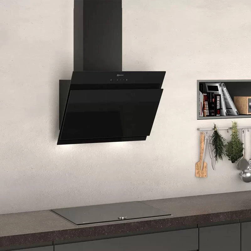 Neff N50 D65IHM1S2B 60cm Angled Chimney Wall Mounted Cooker Hood – Black Glass