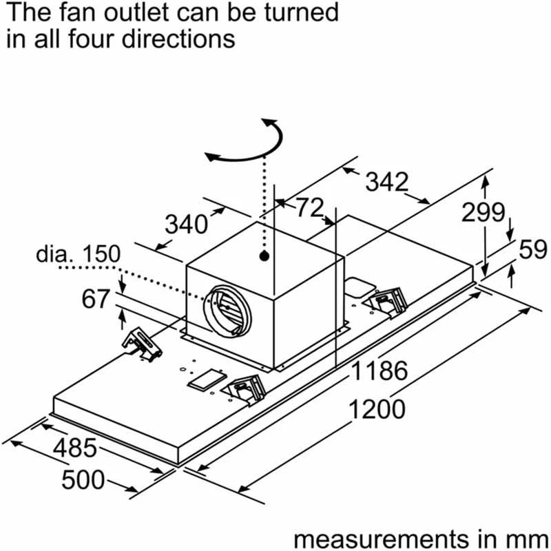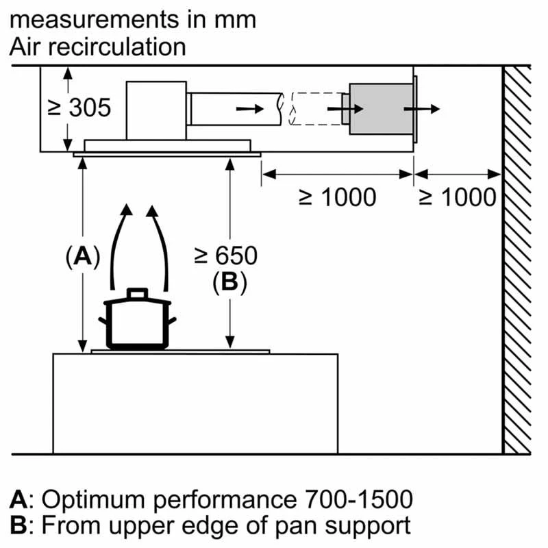 Installation Type: Ceiling Fitted - Min. Required Height from Electric Hob (mm): 650