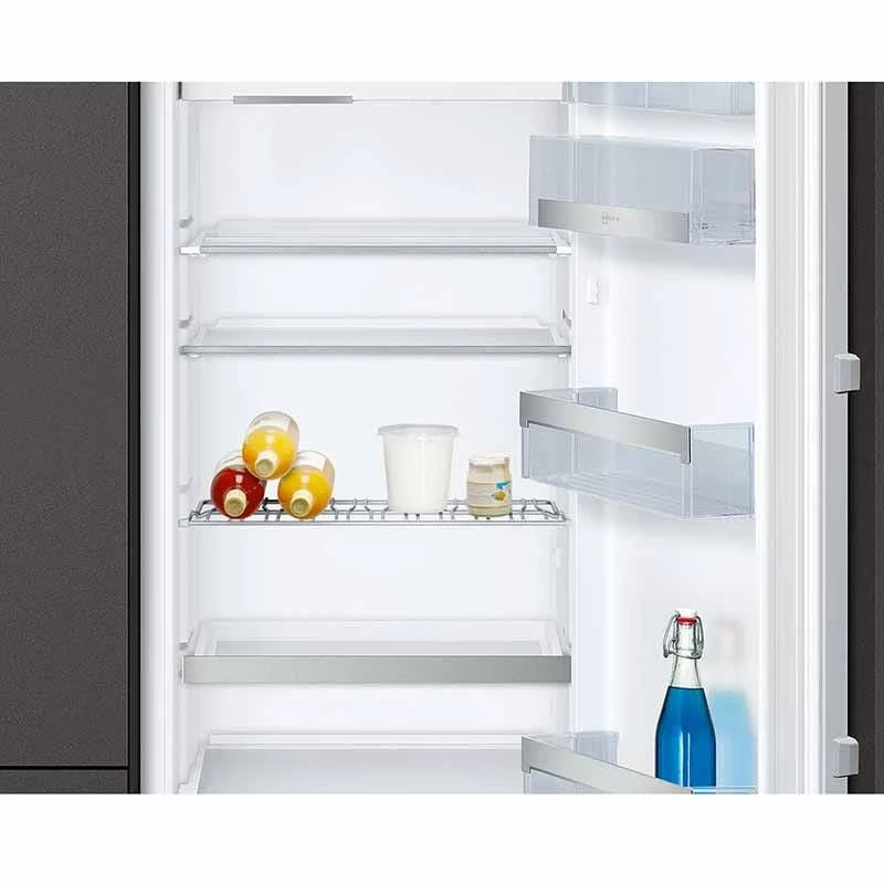 The Neff N70 KI2823FF0G Built In Tall Fridge With Ice Box features a generous 252 litre capacity and easy clean interior. It also comes equipped with FreshSafe 2 which is a drawer designed to preserve your fruit and vegetable’s freshness and nutrients. With this handy drawer you can set the optimum humidity level with a slider. Your fish and meat get special treatment too, with a separate compartment that’s chilled at lower temperatures close to 0℃.