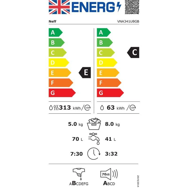Neff VNA341U8GB Floor-Standing 8/5kg 1400rpm Washer Dryer – White – VNA341U8GB