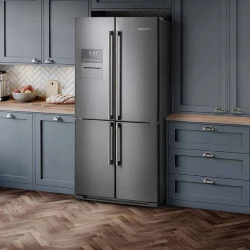 The Rangemaster SXS Deluxe is an American style Fridge Freezer packed with a range of features to suit the modern-day home. Alongside its impressive over all compacity of 584 litres, it also features a child lock function to prevent any accidental changes being made to the fridge freezer. This fridge freezer also includes Ionizer technology. Ionizer spreads negative ions within the refrigerator neutralising unpleasant odour particles, keeping food fresher and improving air quality. With our busy lifestyles another benefit to the SXS Deluxe is the V-Seal technology. An innovative and highly practical method of food preservation using a vacuum-pack seal facility on the front facia for sealing-in food for storage or sous-vide cooking. Another handy feature is its frost-free technology which automatically defrosts the freezer meaning there is no need to spend precious time manually defrosting. There is also a door alarm which will ring if any of the doors are left open for longer than 2 minutes and this is to help prevent cool air escaping. Unique in its design this beautiful fridge freezer is available in a choice of colours and comes with a 2 year manufacturers guarantee.