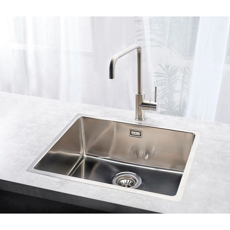 The Reginox Houston 1 Bowl Integrated Sink features a simple, square shaped design ideal for installation within any modern or traditional kitchen layout. Featuring a spacious area for washing an impressive array of cookware types; this unit is available for purchase in several size options to choose from as well. This product is designed for 3 possible installation methods to fit best the user’s needs: integrated, semi-integrated, or undermount. A sleek and striking model makes a versatile addition to any kitchen, no matter the style of the kitchen surrounding it.
