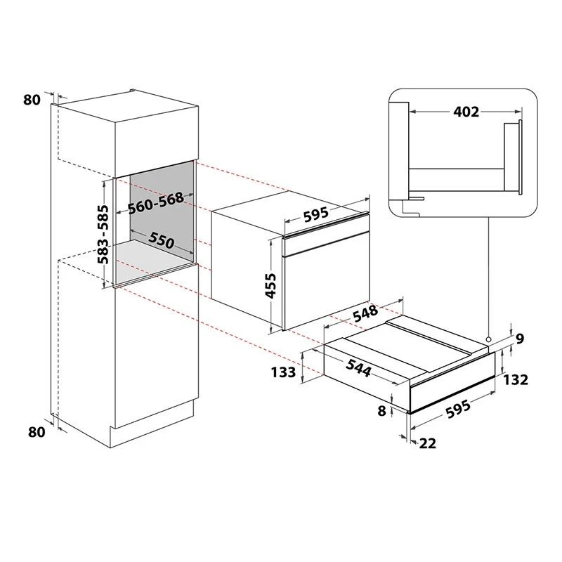 Whirlpool W1114 14cm Warming Drawer – St/Steel – Details